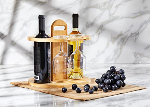 RoyalHouse - رف سهل التركيب من خشب الخيزران بمساحة لزجاجتين و4 كاسات للمشروبات من رويال هاوس