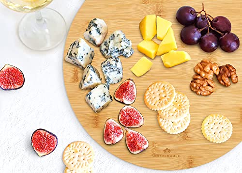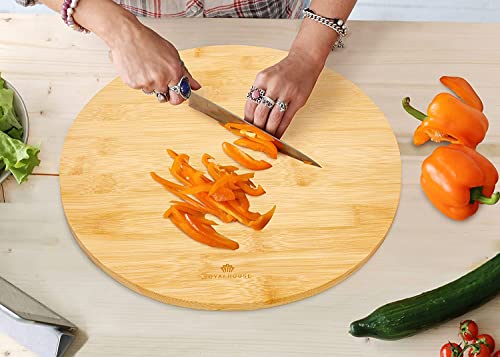 RoyalHouse - لوح تقطيع دائري من الخيزران الطبيعي للمطبخ من رويال هاوس، ألواح تقطيع للحوم والخضروات، لوح للجبن واللحوم الباردة، صينية تقديم دائرية بقطر 30 سم وسُمك 1.5 سم، عبوة من 4 قطع