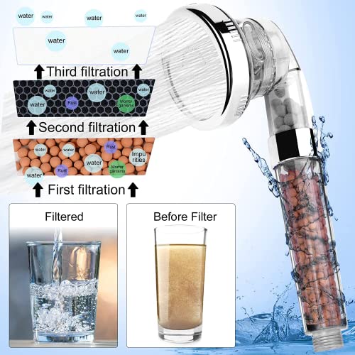 Royalotic - رأس دش بفلتر أيوني لزيادة الضغط محمول باليد لتوفير المياه مع 3 أوضاع للرش وحبات تصفية إضافية قابلة للاستبدال للحمام والمنتجعات الصحية من رويالوتيك