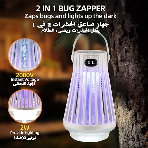 Royalstar - صاعق الحشرات الطائرة الكهربائي المحمول في الهواء الطلق، قاتل البعوض مع ضوء LED بالاشعة فوق البنفسجية، مصيدة ذباب مقاومة للماء للفناء والفناء والحديقة والاستخدام الداخلي