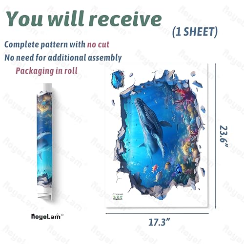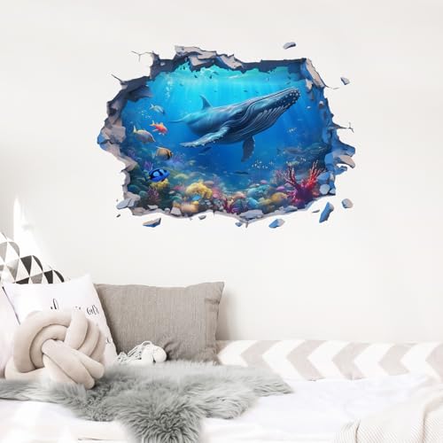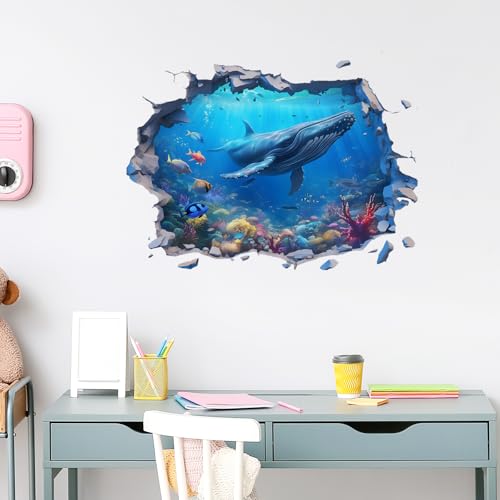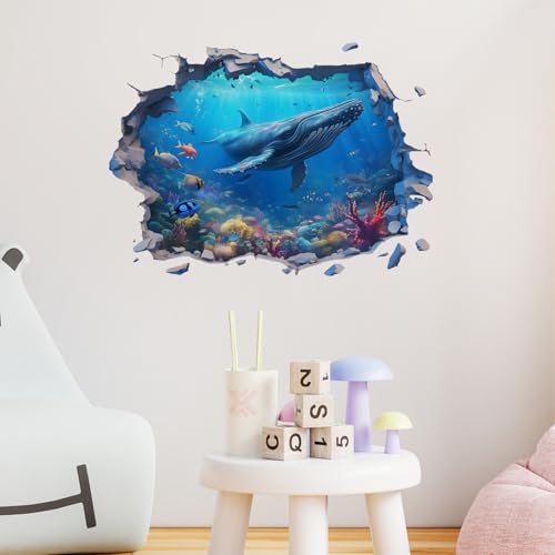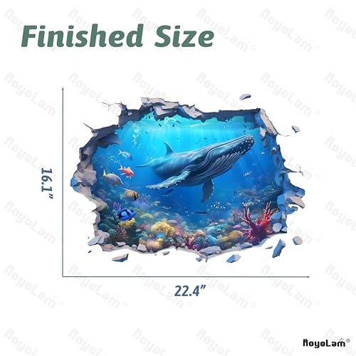 RoyoLam - ملصقات حائط ثلاثية الابعاد بتصميم اسماك الحوت الحدباء من رويولام، ملصقات حائط بتصميم عالم مكسور تحت الماء للاطفال، قابلة للازالة واللصق، ديكور منزلي لغرفة المعيشة وغرفة النوم والحمام