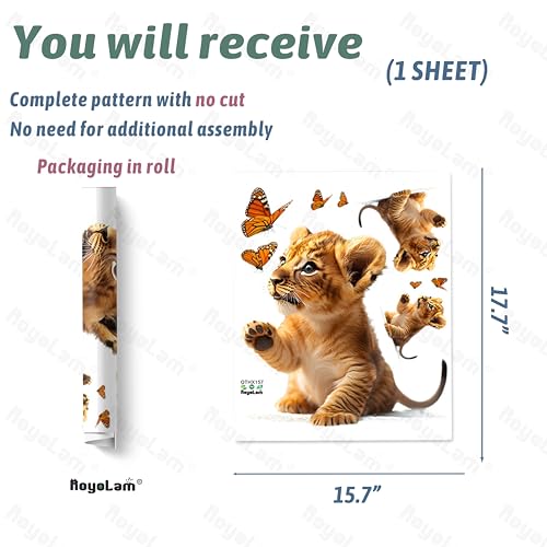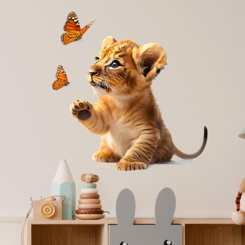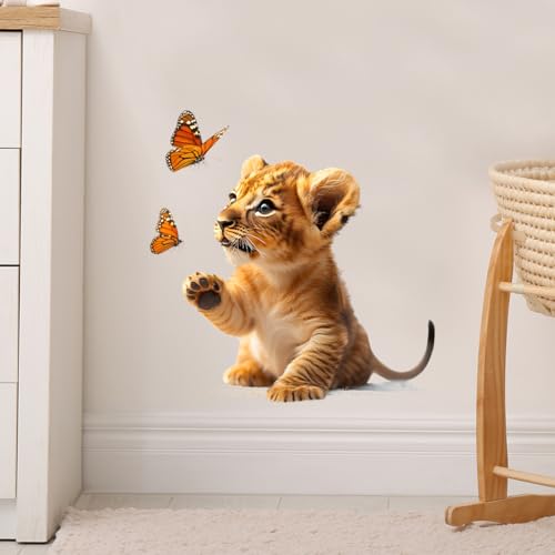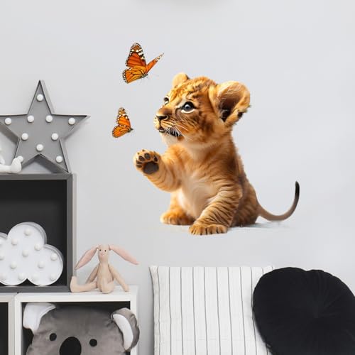 RoyoLam - ملصقات حائط بتصميم اسد وفراشات صغيرة من رويولام، ملصقات فينيل قابلة للازالة بتصميم حيوانات افريقية لغرفة نوم الاطفال وغرفة اللعب، ديكور واقعي قابل للازالة واللصق