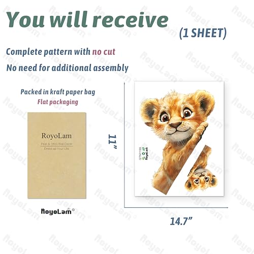 - وعد التصميم والخدمة: أسد صغير لطيف يطل على الحائط؛ عمل فني أصلي من فريق رويلام؛ إرجاع لمدة 30 يومًا ودعم عملاء على مدار الساعة طوال أيام الأسبوع؛ رضاكم هو أولويتنا