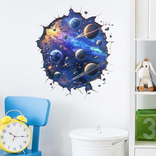 RoyoLam - ملصقات جدارية بتصميم كواكب جميلة ثلاثية الأبعاد مقطوعة بتصميم الكون والفضاء الخارجي لغرفة الأطفال الأولاد قابلة للإزالة واللصق ديكور جداري منزلي لمرحلة ما قبل المدرسة وغرفة المعيشة والنوم من رويولام