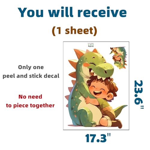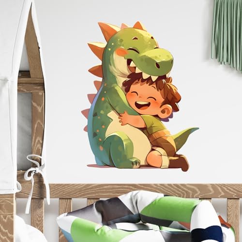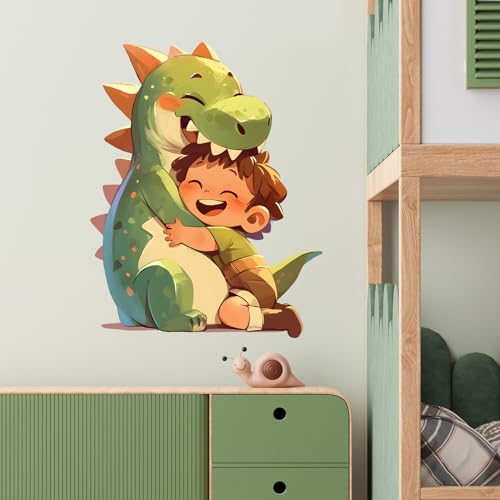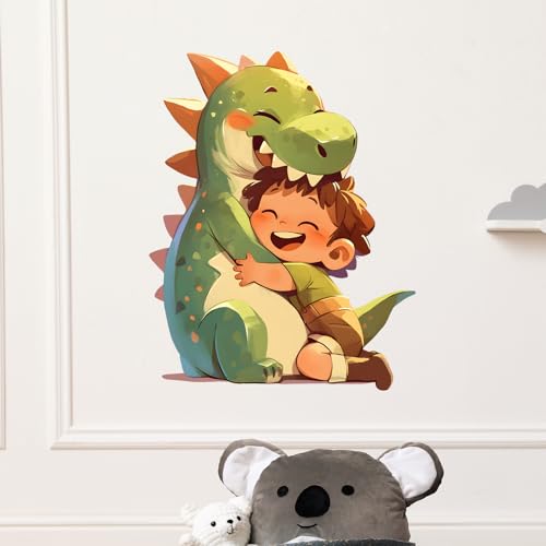 RoyoLam - ملصق حائط كرتوني بنمط ديناصور يعانق ولد صغير قابل للإزالة واللصق، ديكور حائط بنمط حيواني لغرفة الأطفال والحضانة وغرفة اللعب والفصل الدراسي وغرفة المعيشة أو غرفة النوم للأطفال من رويولام