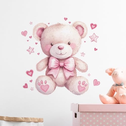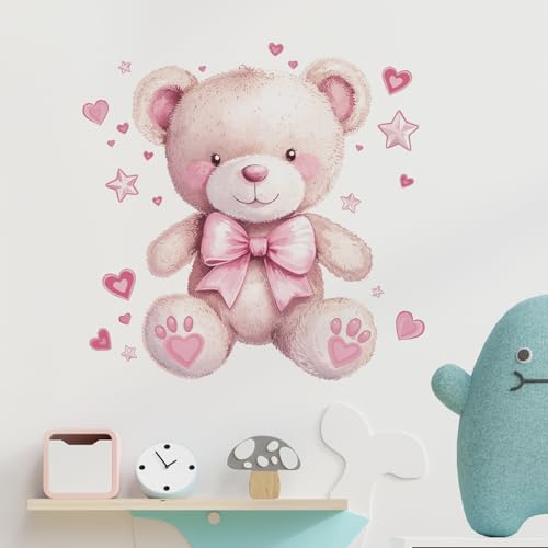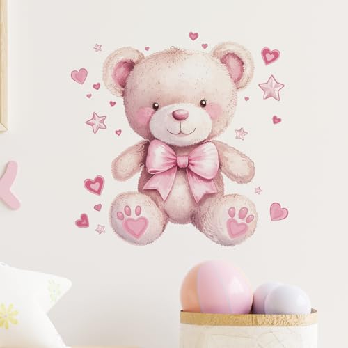 RoyoLam - ملصقات حائط لعروسة تيدي بير بلون وردي لطيف من رويولام، ملصقات حائط لغرفة الأطفال والبنات الصغيرات، ملصقات قابلة للإزالة واللصق، ديكور منزلي للفصول الدراسية ومرحلة ما قبل المدرسة وغرفة المعيشة والنوم