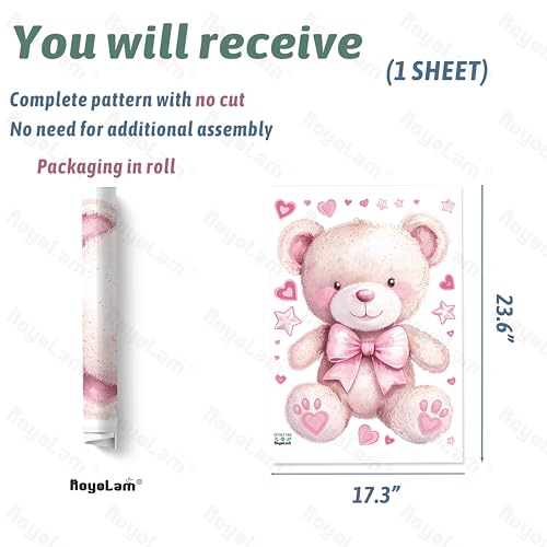 - التصميم: صممه فريق رويلام (الولايات المتحدة والصين)؛ دمية دب وردي مع قوس وقلوب ونجوم وردية؛ هدية رائعة لأطفالك أو أحفادك أو جيرانك أو أصدقائك؛ استيقظ جدارك، اجعل مزاجك أكثر إشراقًا