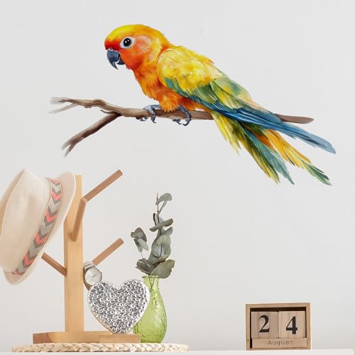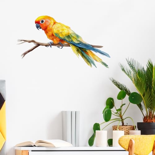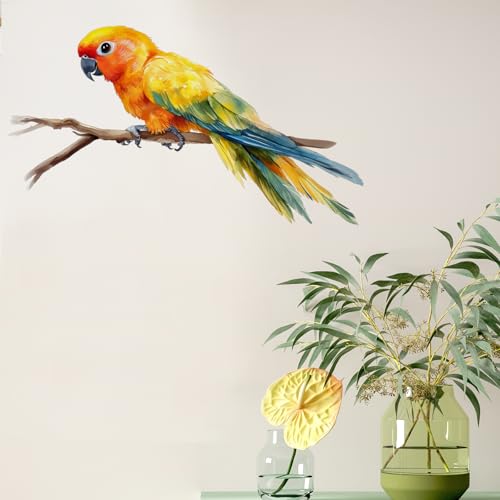 RoyoLam - ملصق حائط بتصميم ببغاء ملون نابض بالحياة على غصن طائر قابل للإزالة واللصق، ديكور حائط فني للأطفال والرضع والفصول الدراسية ومرحلة ما قبل المدرسة وغرفة المعيشة واللعب وغرفة النوم والمدرسة من رويولام
