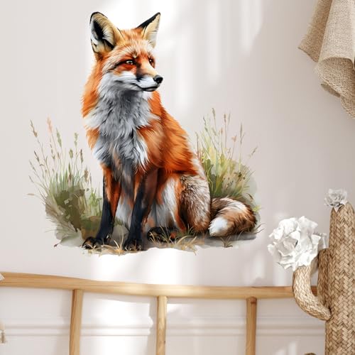 RoyoLam - ملصق حائط بتصميم ثعلب أحمر في العشب، ملصق حائط قابل للإزالة للتقشير واللصق، ديكور حائط للأطفال الصغار في الفصل الدراسي ومرحلة ما قبل المدرسة وغرفة المعيشة وغرفة اللعب وغرفة النوم والمدرسة من رويولام