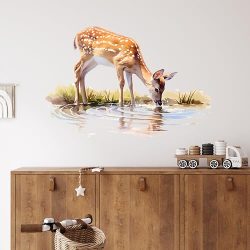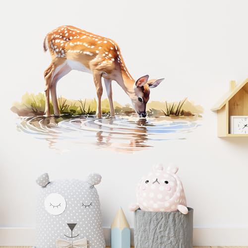 RoyoLam - ملصق حائط لمياه الشرب بتصميم غزال سيكا من رويولام، ملصق حائط قابل للازالة للتقشير واللصق لتزيين الحائط للاطفال في الفصل الدراسي ومرحلة ما قبل المدرسة وغرفة المعيشة وغرفة اللعب وغرفة النوم والمدرسة