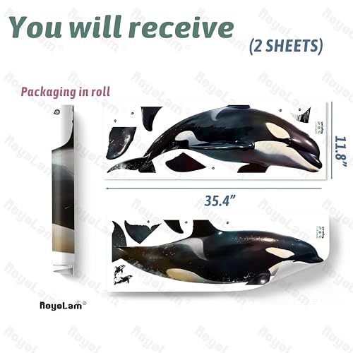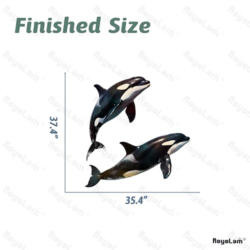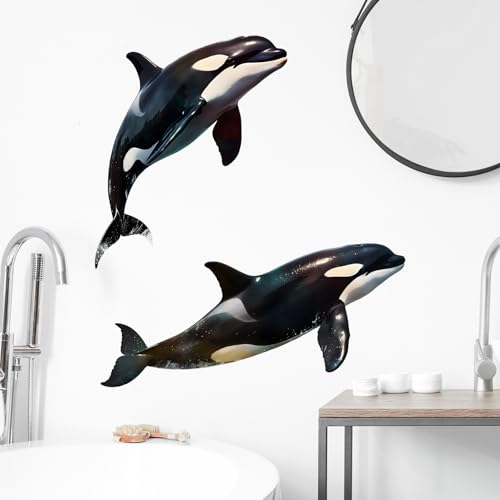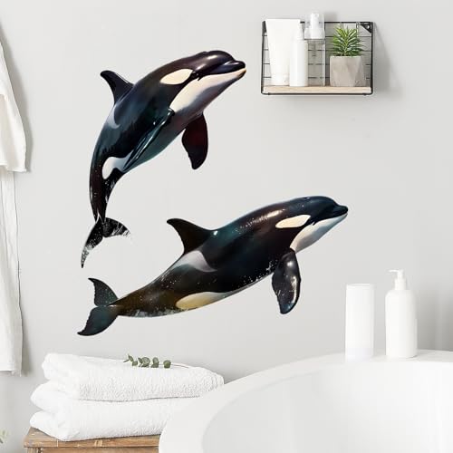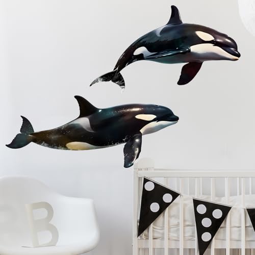 RoyoLam - ملصق حائط بمشهد حوت قاتل واقعي، بوستر حائط حيوانات بحرية للحضانة قابل للإزالة واللصق، ديكور حائط لأطفال ورضع وفصول دراسية ومرحلة ما قبل المدرسة وحمام وغرفة معيشة ولعب ونوم ومدرسة من رويولام، قطعتان