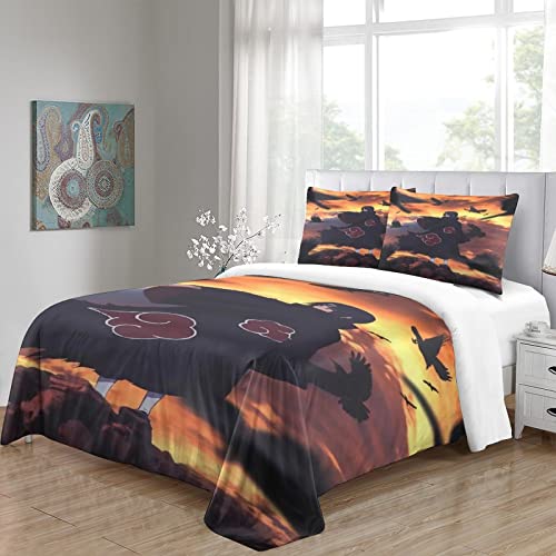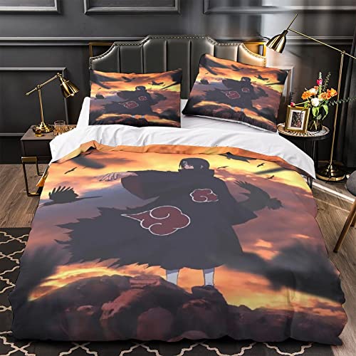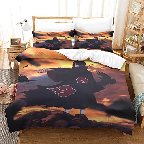 RQWEIN - غطاء لحاف من المايكروفايبر بتصميم ناعم ثلاثي الأبعاد بنمط ناروتو مكون من 3 قطع يتضمن أكياس مخدة، مناسب للرجال والنساء والأطفال، مقاس مزدوج (200 × 200 سم)، مزيج القطن