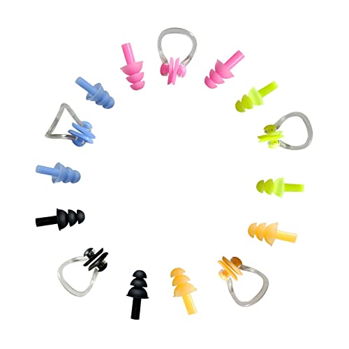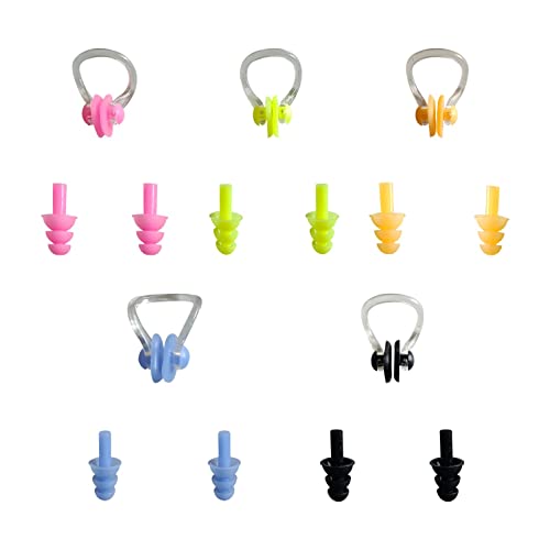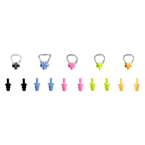 RAR SPORTS - مجموعة مشابك أنف وسدادات أذن من السيليكون للسباحة من ار ار سبورتس، ألوان أسود وأزرق وبرتقالي وأخضر ووردي، سيتم إرسال اللون عشوائيًا