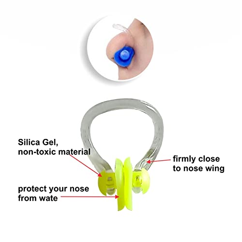 - ناعمة ومريحة: مجموعة سدادات الأذن ومشبك الأنف هذه مصنوعة من السيليكون الناعم وسهلة الاستخدام.