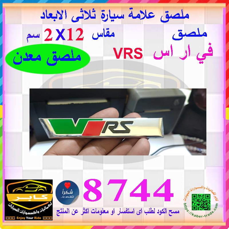 Generic - علامة شعار سيارة ثلاثى الابعاد لصق ( ملصق معدن كلمة فى ار اس ، VRS ، مقاس 12*2 سم ، كود : 8744) - كابرمصر 2020