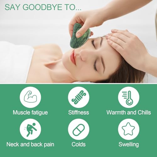 Rseuphiee - طقم تدليك الوجه من حجر اليشم، مكون من أداة الجواشا وبكرة التدليك، لتخفيف التوتر والعناية بالبشرة، يستخدم بشكل يدوي من رسوفيي