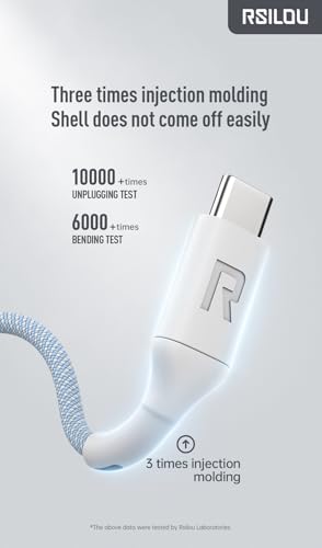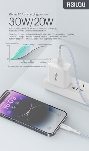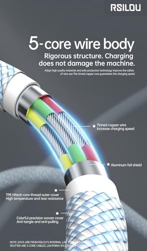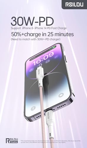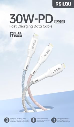 rsilou - كابل لايتنينج إلى USB-C بقدرة 30W عالي المتانة ومرن من رسيلو، كابل بيانات وشحن سريع بطول 1 م، أسلاك نحاسية بمعدل سرعة 480Mbps خالية من التشابك، رمادي