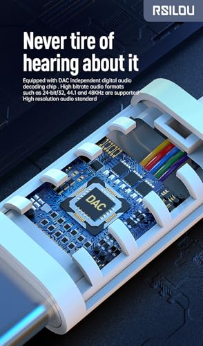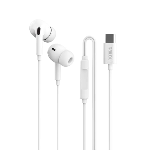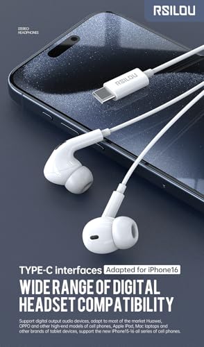 rsilou - سماعة أذن ستيريو سلكية رقمية R3501 نوع سي توفر نقل صوت بدون فقدان وأصوات مكبر صوت محسنة ومكالمات عالية الدقة HD واستجابة بلمسة واحدة متوافقة مع سلسلة آيفون 15 و16 من رسايلو