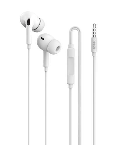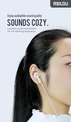 rsilou - سماعات أذن بسلك R3502 من رسيلو مع قابس 3.5 ملم، تحكم مدمج كامل الميزات، استجابة بزر واحد، ميكروفون HD عالي الدقة، نقل صوت بدون خسارة، جودة صوت مكبر صوت محسنة