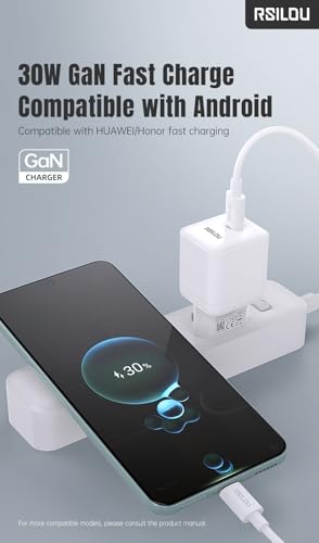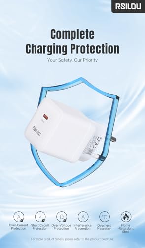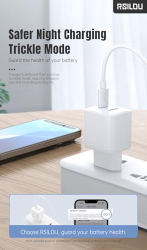 rsilou - شاحن من رسيلو بتقنية Choice، متوافق مع الهواتف الخلوية، بمنفذ واحد، مع كيبل USB-C مضفر 1 متر