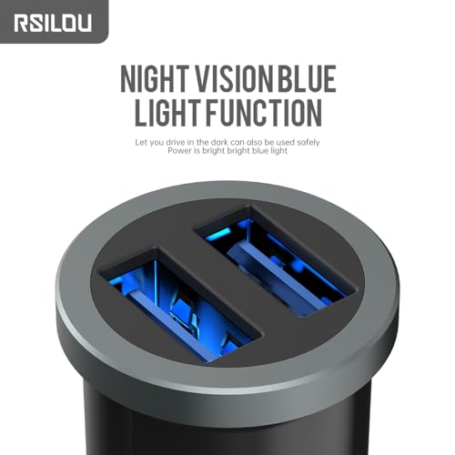 rsilou - شاحن من رسيلو سلكي، متوافق مع الهواتف الذكية والأجهزة اللوحية وأجهزة USB، بمنفذين، شحن آمن مع ضوء أزرق للرؤية الليلية