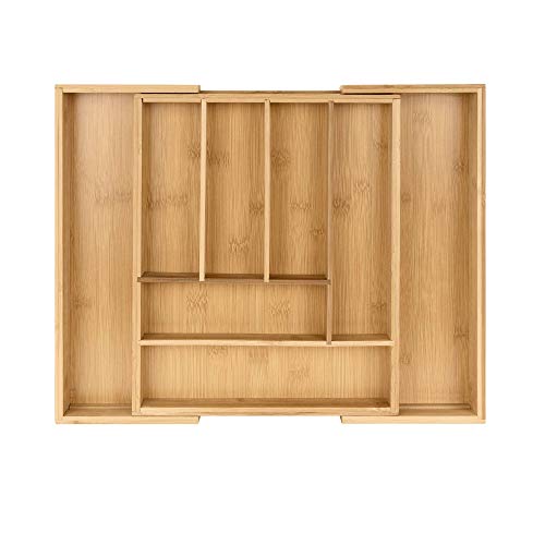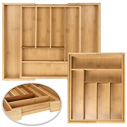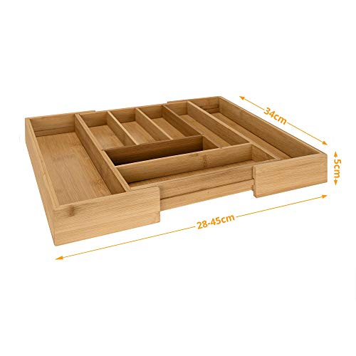 - معجزة موفرة للمساحة: في صينية أدوات المائدة القابلة للتحويل هذه التي تحتوي على 6 إلى 8 مساحات تخزين (28-45 × 34 × 5 سم) لديك مساحة كبيرة لأدوات المائدة وما إلى ذلك. يجعل إعداد الطاولة ممتعًا
