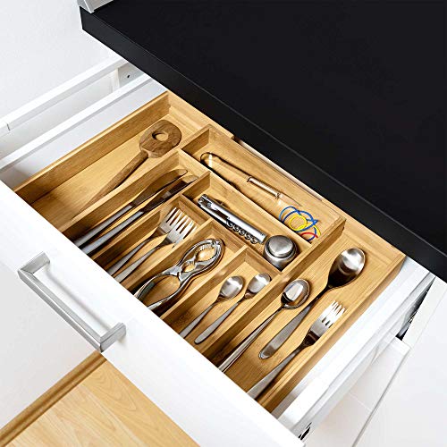 RSW24 - صينية ادوات مائدة RSW24 | درج من الخيزران | درج درج قابل للتعديل | حتى 8 مساحات تخزين