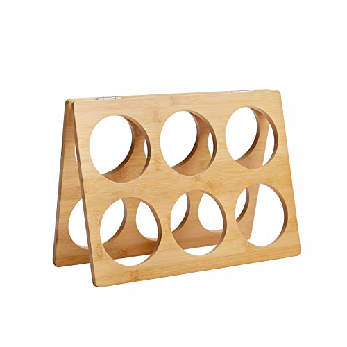 RTA - حامل زجاجات عصير من خشب الخيزران لحمل 6 زجاجات من ار تي ايه، رف تخزين زجاجات قابل للطي لسطح المطبخ أو الدولاب الجانبي