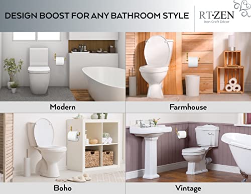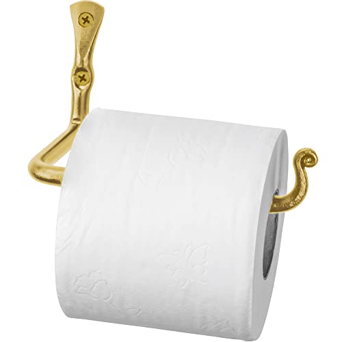 RTZEN - حامل ورق تواليت للحمام، مصنوع يدويا من الحديد المطاوع الريفي لديكور الحائط - قضيب ورق تواليت يثبت على الحائط لديكور الحمام بتصميم ريفي عصري، ذهبي غير لامع، من رتزين