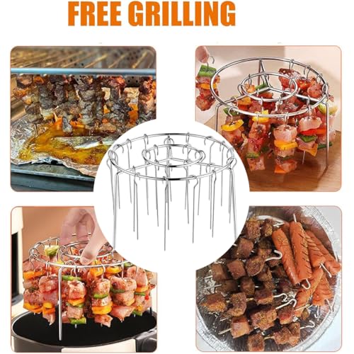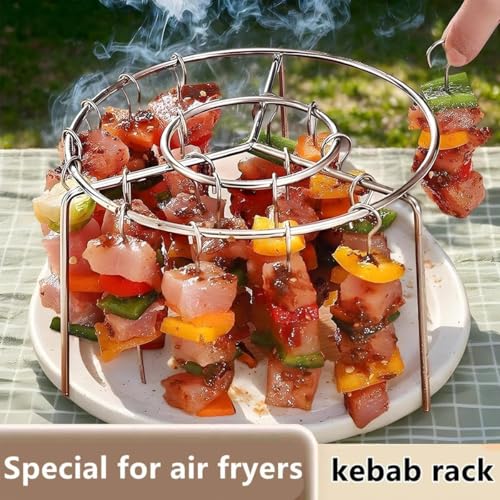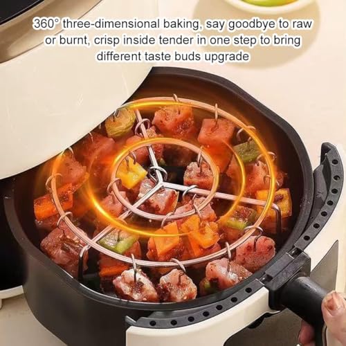 Ruayia - شبكة مقلاة هوائية دائرية مقاس 6 انش من رويا، ملحقات داخلية للقلاية الهوائية من الستانلس ستيل مع 24 قطعة اسياخ شواء، اسياخ لحم، شواية قابلة لاعادة الاستخدام، ملحقات شواء للحوم والخضروات
