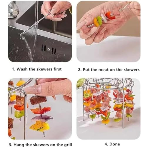 - محتويات الصندوق: تتميز شواية المقلاة الهوائية هذه بمقاس متوسط: دائري، 16 سم × 16 سم × 10 سم (6.3 بوصة × 6.3 بوصة × 3.94 بوصة). مجهزة بـ 24 سيخ من الستانلس ستيل قابلة للإزالة (طول 9 سم / 3.54 انش) تلبي احتياجات الطبخ اليومية بسهولة. ملاحظة: يرجى فرد ثلاثة أقدام من الشبكة قبل الاستخدام الأول.
