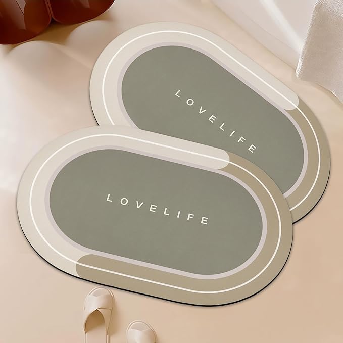 Generic - سجادة حمام مطاطية سريعة الجفاف ومضادة للانزلاق وفائقة الامتصاص وسريعة امام حوض المطبخ وغرفة الاستحمام وحوض بيضاوية قطعتان بيج + 16.9 × 26.7 انش