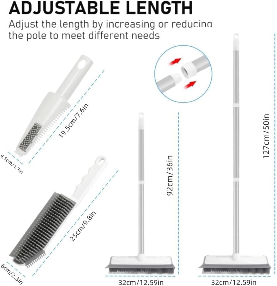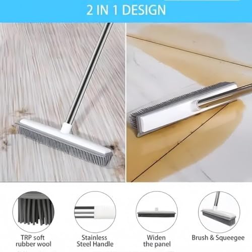 - المادة: رأس فرشاة المقشة المطاطية مصنوع من شعيرات مطاطية، بحرفية دقيقة ومتانة وليس من السهل تشويهه. يمكنها إزالة الغبار أو شعر الحيوانات الأليفة بسهولة من السجاد والبلاط والأرضيات، مما يحافظ على نظافة بيئة منزلك.