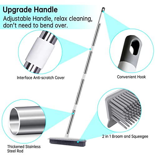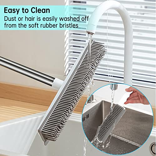 SWETHAW - مساحة مطاطية مع ممسحة ومقبض طويل قابل للتعديل، مزيل شعر وفرو الحيوانات الأليفة، فرشاة محمولة لإزالة الوبر، مجرفة سجاد وفرشاة أرضية للخشب الصلب والبلاط والنوافذ