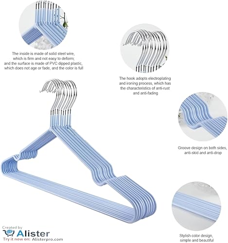 Generic - شماعات مطلية بالمطاط - شماعات معدنية صلبة فاخرة مصممة بطلاء مطاطي شديد التحمل لحمل ملابسك بأمان. تأتي في مجموعة من 10 قطع، الوان مختلفة، ابعاد 40 × 20 سم.