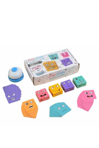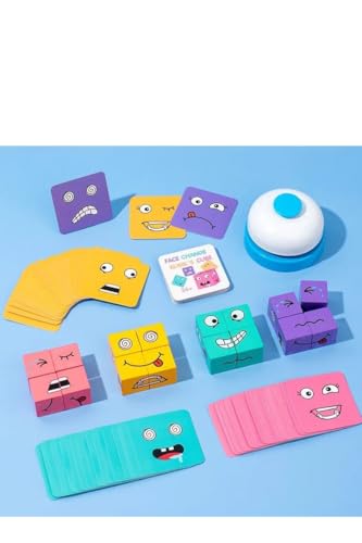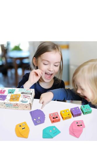 Generic - لعبة مكعبات روبيك للوجوه المضحكة، مكعبات ملونة للأطفال مع بطاقات تعبيرية
