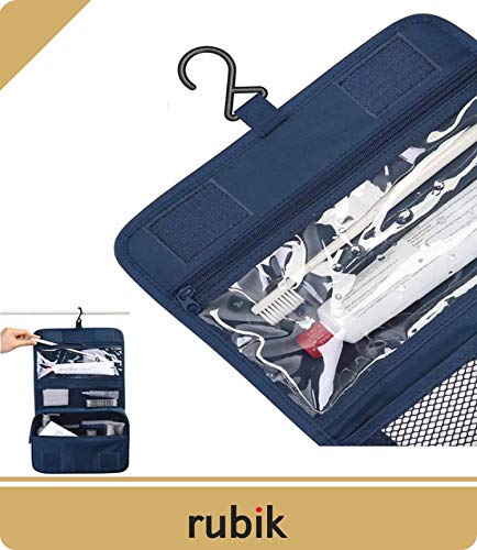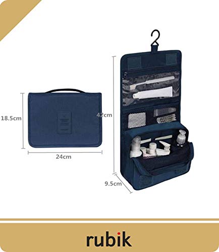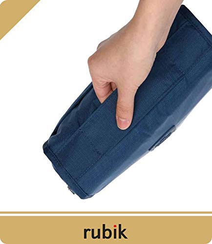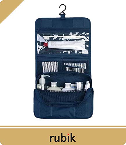 Rubik - روبيك حقيبة مستحضرات تجميل معلقة للسفر تنظيم ادوات المكياج المحمولة للرجال والنساء واسعة وصغيرة الحجم مقاومة للماء ازرق كحلي نايلون