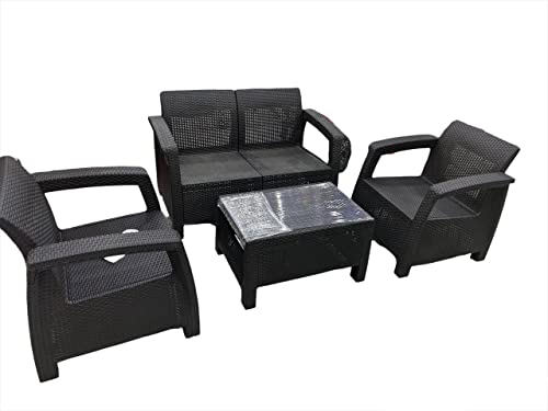 Generic - طقم فوتية روبيتان أبيض (كنبة 2 فرد + 2 كرسى + ترابيزة وسط (RS 1) من روبكس (أسود)