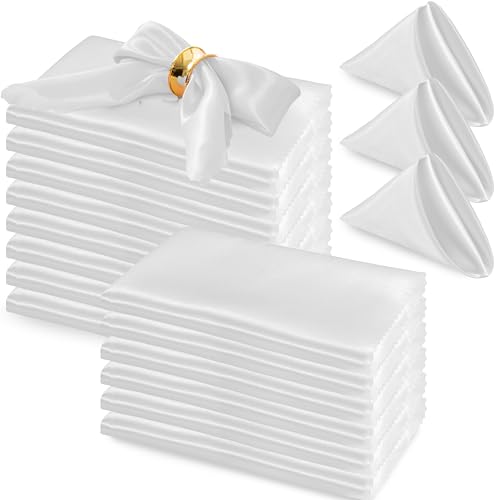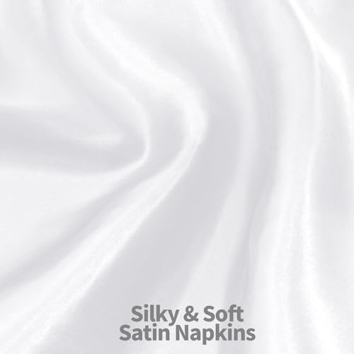 - مناديل عشاء مربعة: 72 قطعة من مناديل الساتان البيضاء بمقاس 43 × 43 سم. مصنوعة من قماش ساتان ناعم ولامع، تساعد المناديل القابلة لإعادة الاستخدام على تحسين تجربة تناول الطعام. مناديل ساتان كبيرة عملية وبأسعار معقولة لاستخدام 6 طاولات على الأقل.