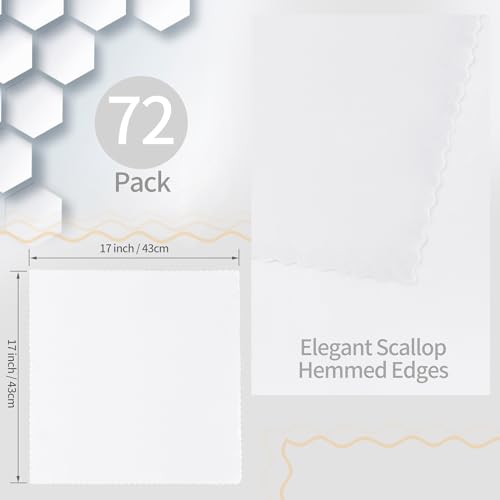 RUDONG M - مناديل قماشية مربعة، من الساتان الأبيض ناعمة بحواف مموجة، لطاولة العشاء قابلة لإعادة الاستخدام والغسل لحفلات الزفاف والولائم وتزيين الحفلات من رودونج ام، 72 قطعة، مقاس 43 × 43 سم