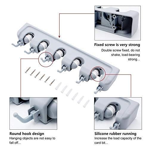 RUDRAYA - حامل سحري متعدد الأغراض يثبت على الحائط بـ 5 فتحات مصنوع من بلاستيك ايه بي اس مكنسة ومنظم مساحة تخزين أماكن و6 خطافات للمطبخ والحديقة رودرايا
