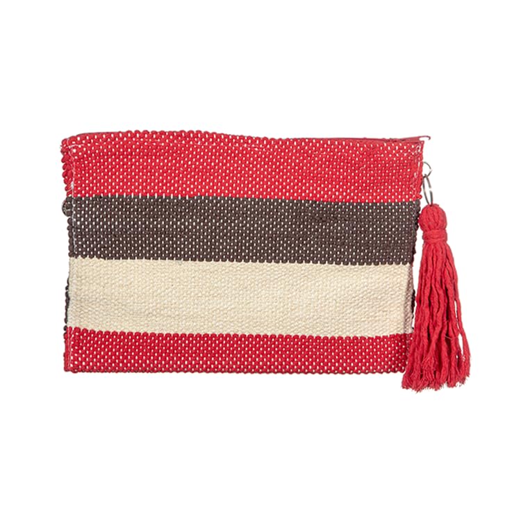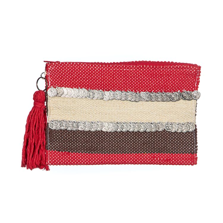 Generic - شنطة كلاتش كليم مصنوعة يدويا مع اجزاء معدنية وشراشيب من راغزي، أحمر