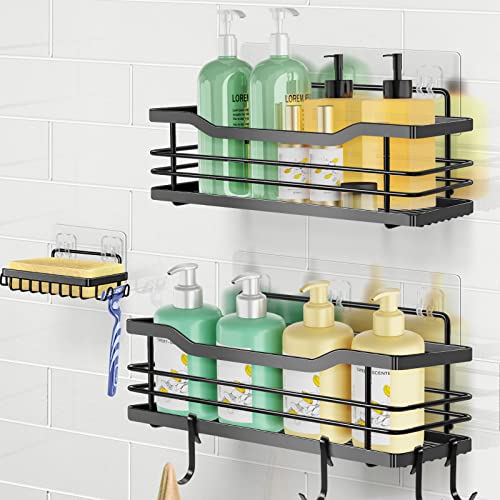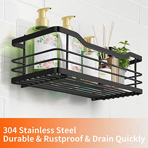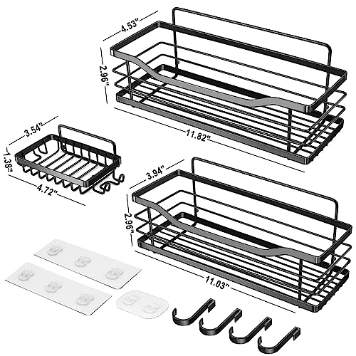 Ruhetfam - طقم تنظيم حمام من ستانلس ستيل 304 بتركيب بدون ثقب مكون من 3 قطع، رف منظم للحمام والبانيو، أسود
