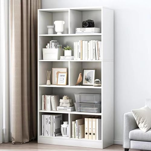 Ruication - خزانة كتب خشبية مكونة من 5 طبقات رويكيشن رفوف تخزين مفتوحة وحدات تنظيم عصرية قائمة بذاتها لغرفة المعيشة وغرفة النوم والدراسة والمنزل والمكتب أبيض 60 سم × 24 1.78 متر