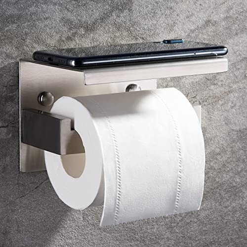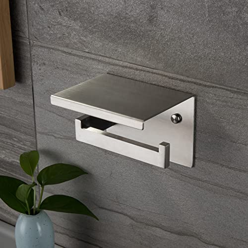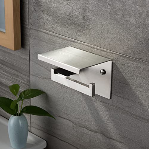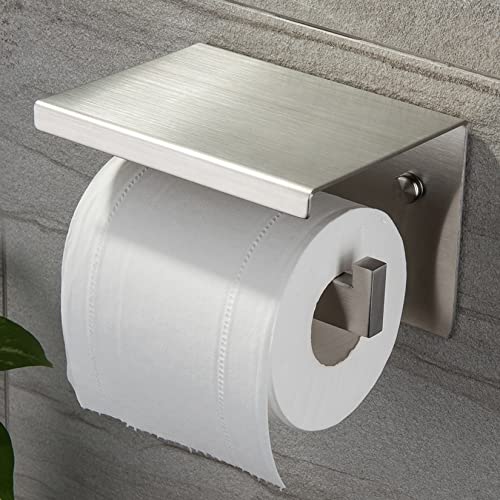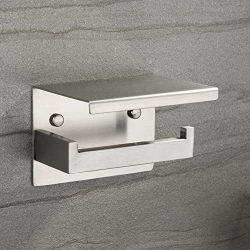 RUICER - حامل ورق التواليت من رويسر بدون ثقب مع رف - حامل ورق التواليت للصق، حامل بكرة تواليت ذاتي اللصق من الستانلس ستيل للمطبخ والحمام