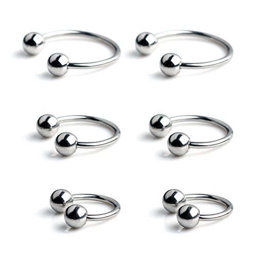Ruifan - مجموعة خواتم من صلب جراحي 316L من رويفان بتصميم CBR على شكل حدوة حصان دائرية لثقوب الانف والحواجب والزنمة واالشفاه والاذن، بوزن 20 جرام، 6 قطع بمقاس 6 و8 و10 ملم, ستانلس ستيل