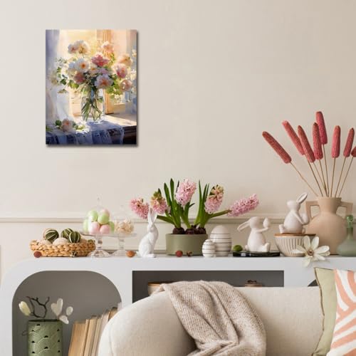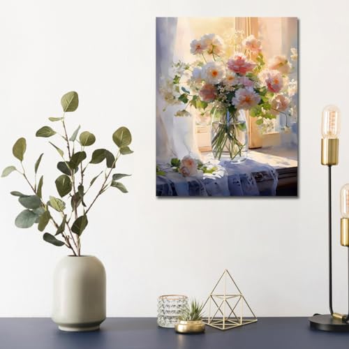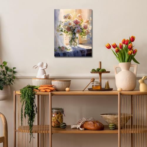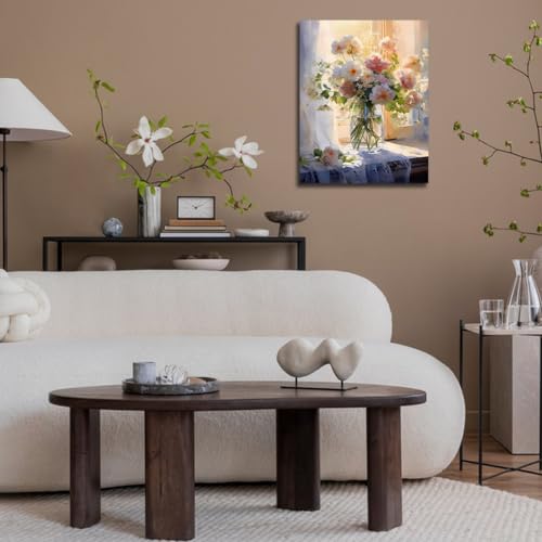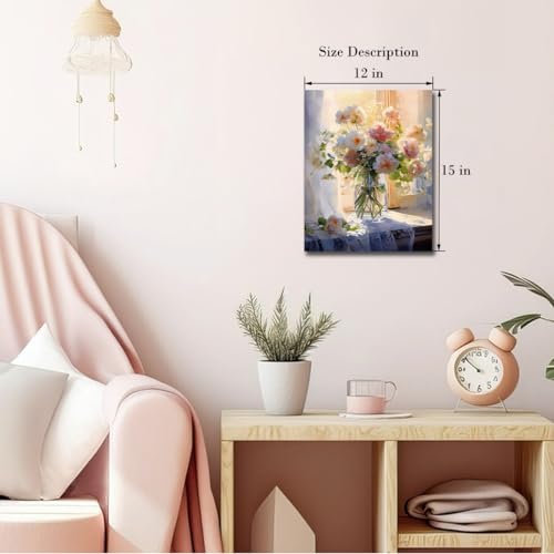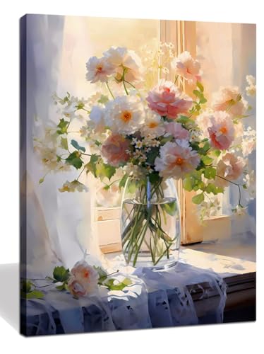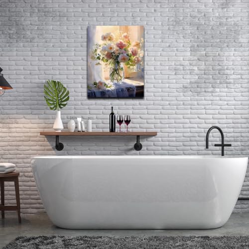 RUIFENGL - لوحة فنية جدارية للحمام بتصميم زهرة بيضاء وزهرية في زجاجة صور قماشية مطبوعة لغرفة النوم لوحات بالوان مائية جاهزة للتعليق لديكور المنزل والمكتب مقاس 12 انش × 15 S