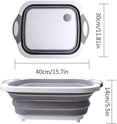 Spaceshoop - لوح تقطيع من رويهاو مصنوع من البلاستيك مع مصفاة من السيليكون بتصميم قابل للطي وسدادة تصريف وسلة غسيل للخضروات