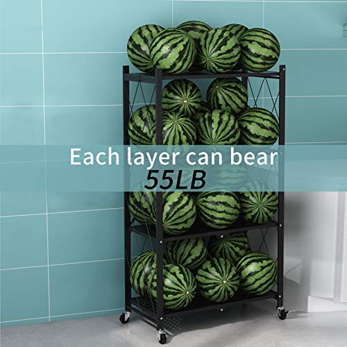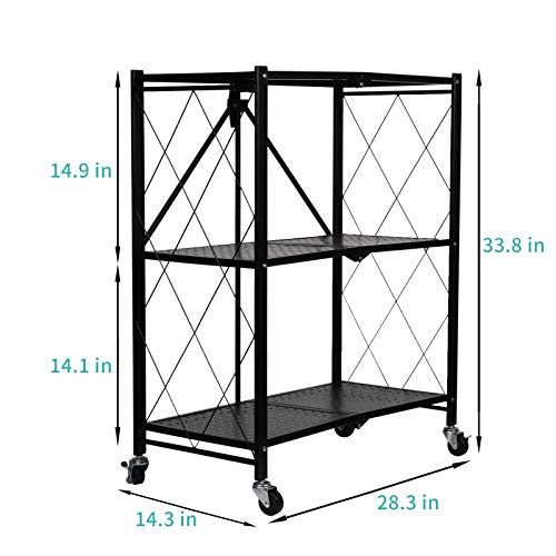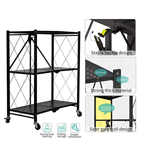 RUIJIAJU - رف تخزين قائم قابل للطي من 3 طبقات، رف تخزين معدني شديد التحمل مزود بعجلات من رويجياجو