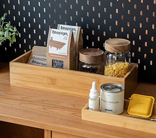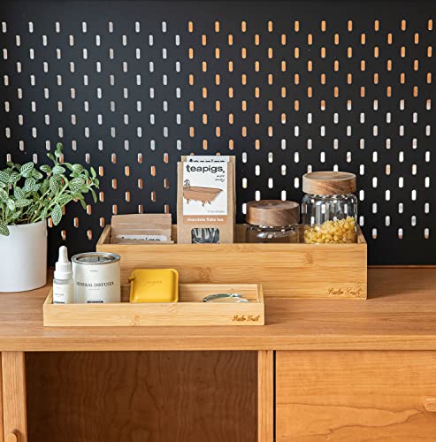 - تضيف صينية الزينة الفاخرة المصنوعة من خشب البامبو أجواء المنتجعات اللطيفة إلى حمامك ومطبخك ومنزلك. يمكنك استخدامها لتخزين فرشاة الأسنان أو النباتات أو الصابون أو الشموع أو أدوات العناية بالنظافة الشخصية فيها. يتناسب اللون المحايد اخشب البامبو بسهولة مع مختلف الديكورات.